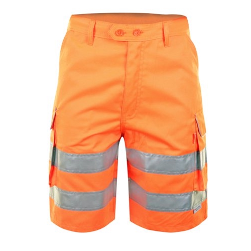 High Visibility shorts suitable for wearing on railway lines. Made from 280gsm 80/20 polyester/cotton, these durable, soft and comfortable shorts are Teflon coated for easy cleaning. Features 2 hip pockets and 2 cargo pockets for keeping personal effects secure. Machine washable at 40 degrees C up to a maximum of 30 cycles.